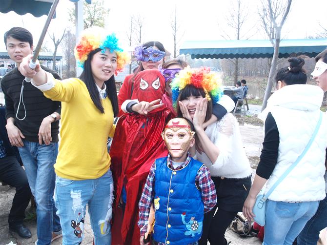 酒足飯飽思游樂,俏皮可愛的蜘蛛俠、稚嫩清秀的孫悟空、美麗動人的面具公主,尋著春天特有的氣息紛紛“降臨”人間。
